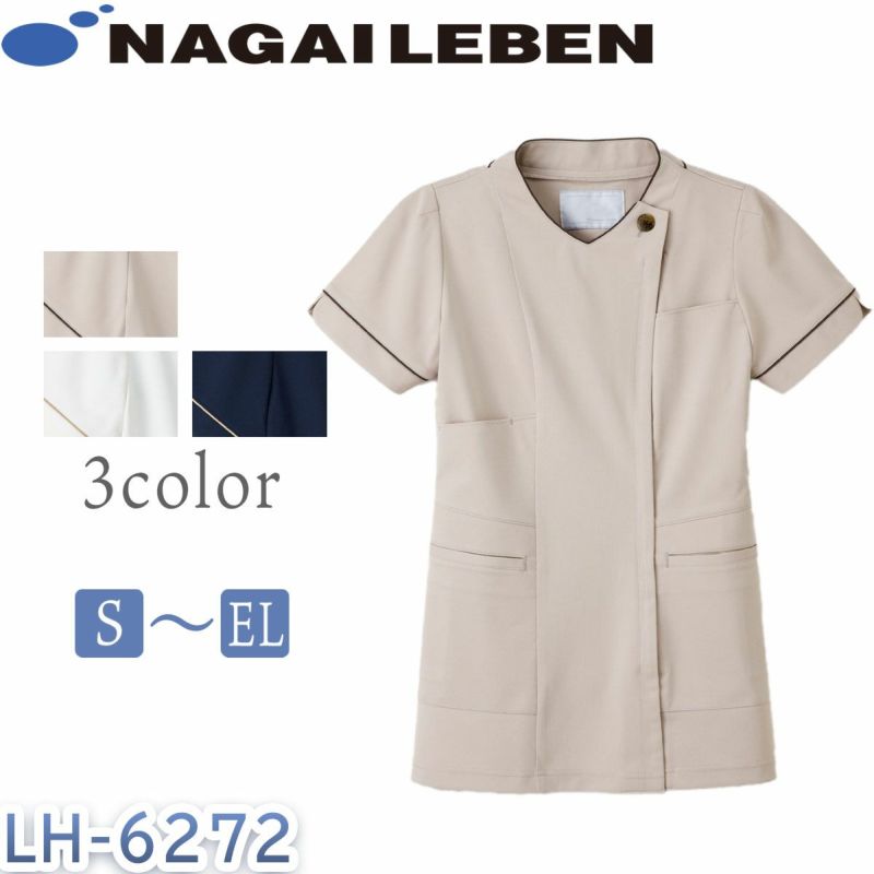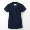衿ぐりの配色パイピングと胸ボタン、きっちりとした腰ポケットが新しさを感じさせてくれるデザインです。