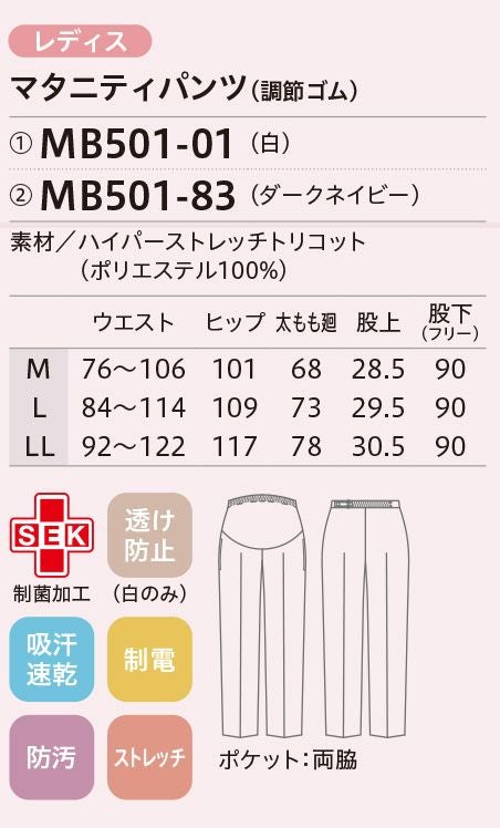 他の画像を見る マタニティパンツ レディス 女性用 メディカル 医療用 住商モンブラン MB501-01 MB501-83 ストレッチ レディース マタニティ 新着 メーカー希望小売価格 ¥ 9,900 のところ WEB特別価格 ¥ 6,930 税込 詳細を見る お気に入りに登録する