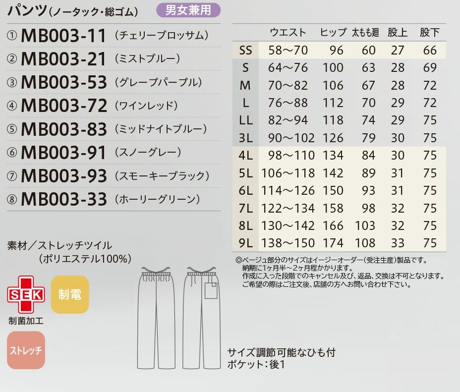 他の画像を見る パンツ メンズ レディース ユニセックス 男女兼用 メディカル 医療用 住商モンブラン MB002-01 MB002-83 ストレッチ ヒモ入り ユニセックス おすすめ 新着 メーカー希望小売価格 ¥ 7,150 のところ WEB特別価格 ¥ 5,005 税込 詳細を見る お気に入りに登録する