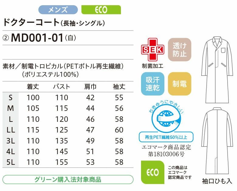 他の画像を見る 白衣 ドクターコート 長袖 シングル 医療用 メディカル 男性用 メンズ 住商モンブラン MD001-01 MONTBLANC ドクター 医師 薬剤師 研究員 メンズ メーカー希望小売価格 ¥ 9,350 のところ WEB特別価格 ¥ 6,545 税込 詳細を見る お気に入りに登録する