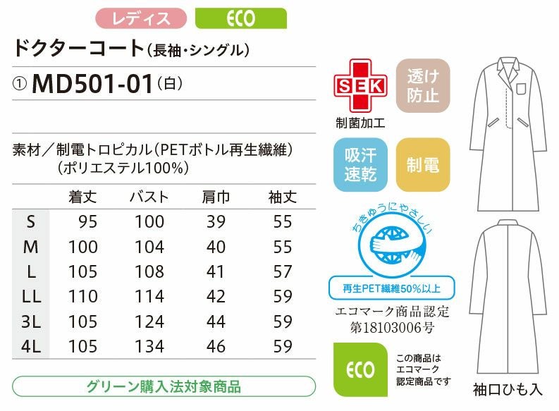 他の画像を見る 白衣 ドクターコート 長袖 シングル 医療用 メディカル 女性用 レディス 住商モンブラン MD501-01 MONTBLANC ドクター 医師 薬剤師 研究員 レディース メーカー希望小売価格 ¥ 9,130 のところ WEB特別価格 ¥ 6,391 税込 詳細を見る お気に入りに登録する