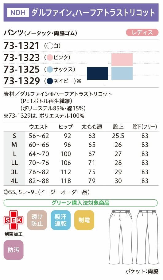 他の画像を見る パンツ レディス 女性用 メディカル 医療用 住商モンブラン 73-1321 73-1323 73-1325 73-1329 ドクター ナース 看護師 介護士 整体師 歯科 レディース メーカー希望小売価格 ¥ 8,250 のところ WEB特別価格 ¥ 5,775 税込 詳細を見る お気に入りに登録する