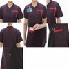 センターファスナー開き・ラグランスリーブの男女兼用スクラブです。