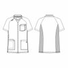胸ポケットを二枚ずらして重ねたデザインがスタイリッシュ。バックスタイルの両サイドに配したニット素材が動きやすさと涼しさを提供します。適度なゆとりのあるシルエットになっています。