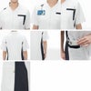 胸ポケットを二枚ずらして重ねたデザインがスタイリッシュ。バックスタイルの両サイドに配したニット素材が動きやすさと涼しさを提供します。適度なゆとりのあるシルエットになっています。