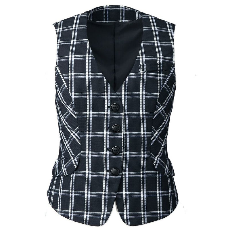 バイヤス使いとネイビーで細見え効果を高めたベスト
