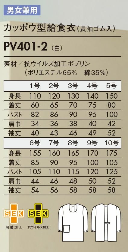 他の画像を見る 住商モンブラン 白衣 子供用 児童用 給食衣 かっぽう着 長袖ゴム入り メンズ レディース ユニセックス 男女兼用 MONTBLANC 飲食 サービス PE401-2 ユニセックス メーカー希望小売価格 ¥ 3,410 のところ WEB特別価格 ¥ 2,387 税込 カートに入れる お気に入りに登録する