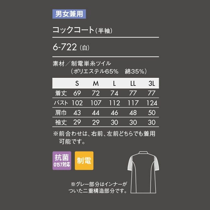 他の画像を見る ユニセックス おすすめ MONTBLANC コックコート メンズ レディース ユニセックス 男女兼用 住商モンブラン SMOOTH-FIT RT6631 メーカー希望小売価格 ¥ 7,700 のところ WEB特別価格 ¥ 5,390 税込 詳細を見る お気に入りに登録する