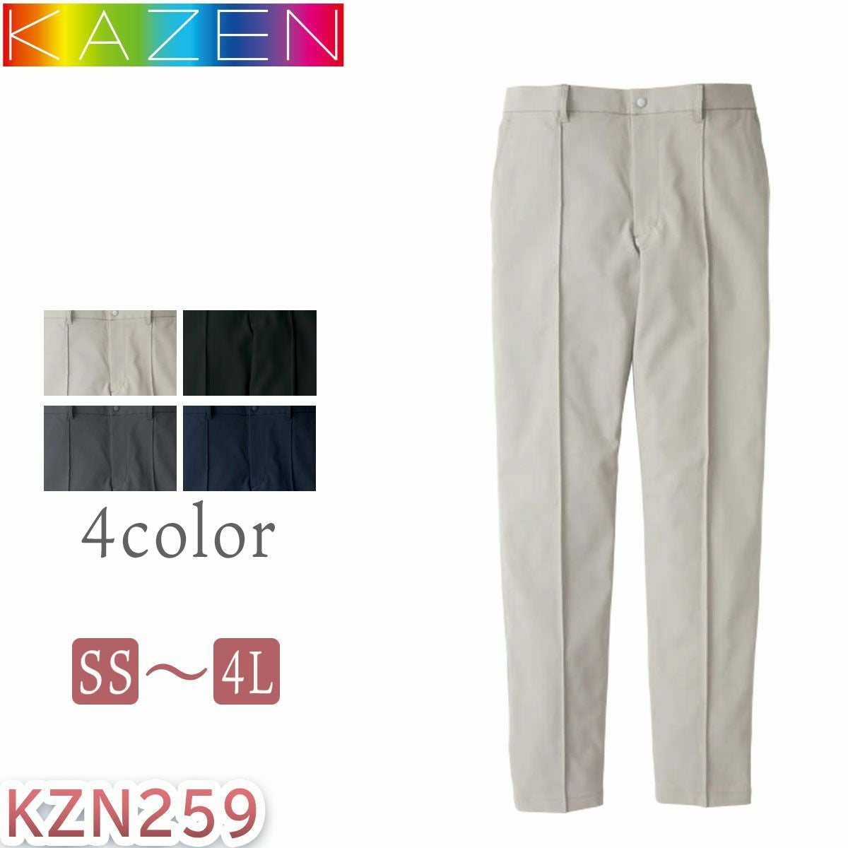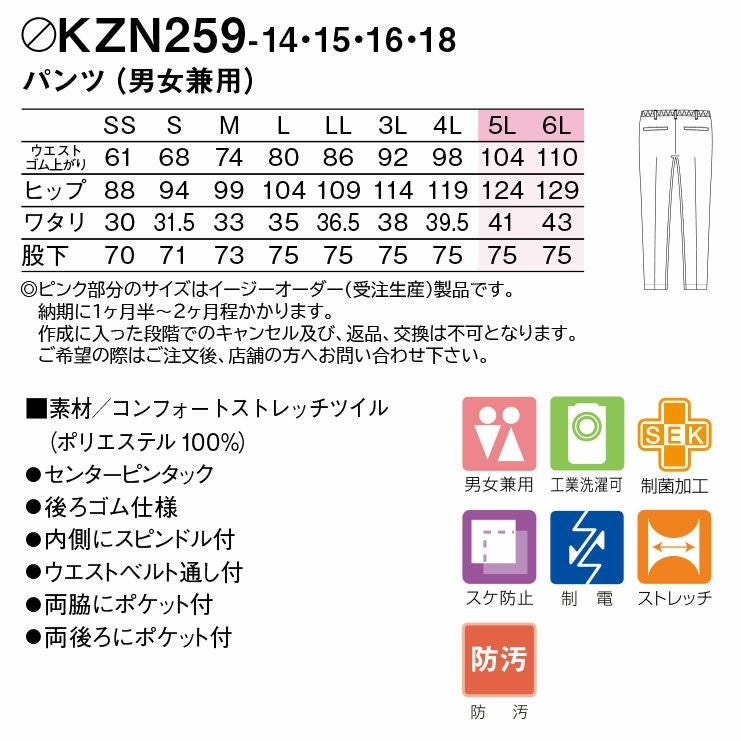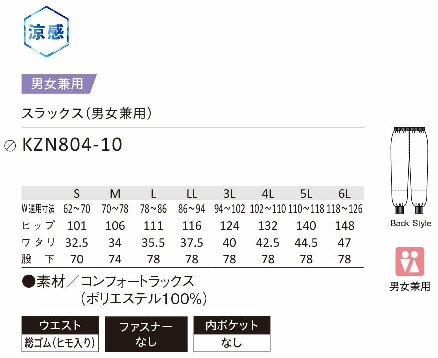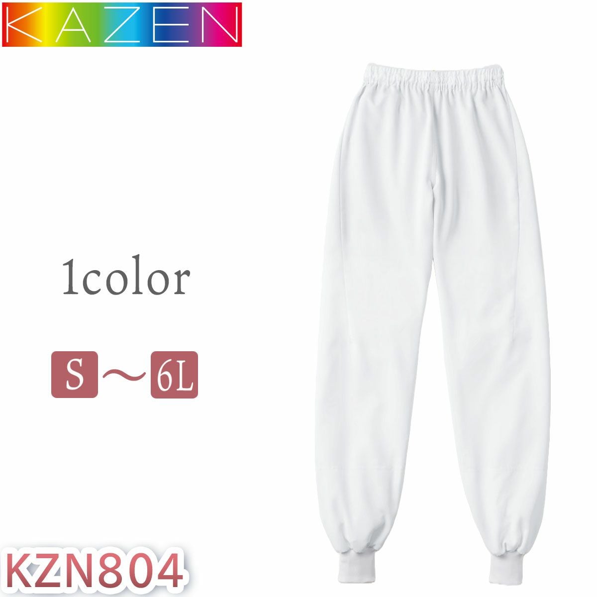 KAZEN スラックス カゼン メンズ レディース ユニセックス 男女兼用 ウエスト総ゴムヒモ入り ポケット無し ファスナー無し パンツ フードファクトリー 食品工場 KZN804-10