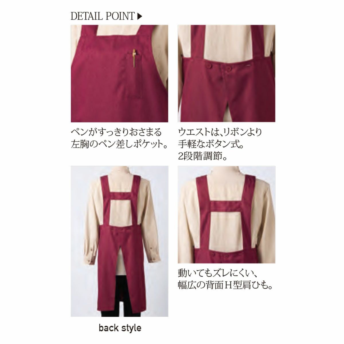 KAZEN 胸当てエプロンH型 メンズ レディース ユニセックス 男女兼用 カゼン KZN494-63 KZN494-65 KZN494-68 サービス 飲食 接客 厨房 レストラン パティシエ カフェ シェフ ソムリエ 中華 バリスタ パン屋 ホールスタッフ