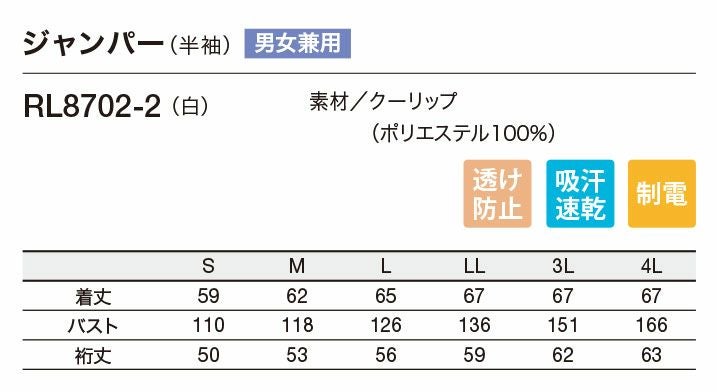 MONTBLANC ジャンパー 半袖 食品工場 フードファクトリー メンズ レディース ユニセックス 男女兼用 モンブラン RL8702 サービス