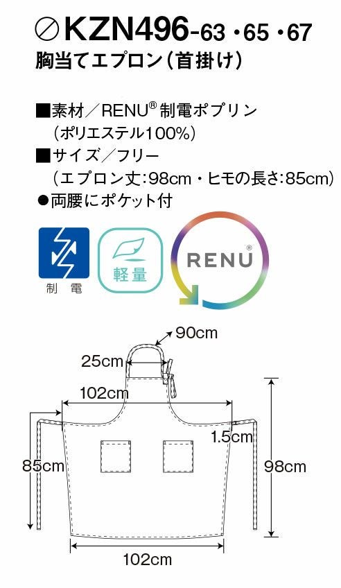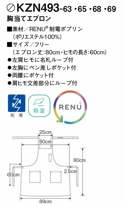 KAZEN 胸当てエプロン 首かけタイプ メンズ レディース ユニセックス 男女兼用 カゼン KZN496-63 KZN496-65 KZN496-67 サービス 飲食 接客 厨房 レストラン パティシエ カフェ シェフ ソムリエ 中華 バリスタ パン屋 ホールスタッフ