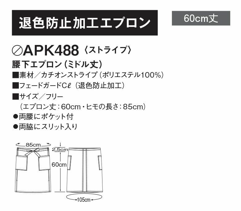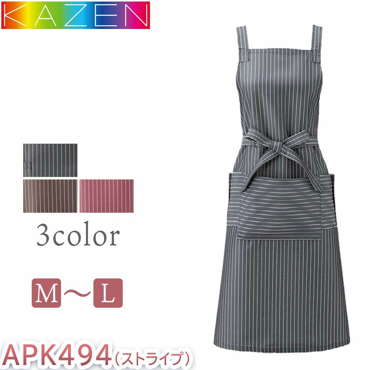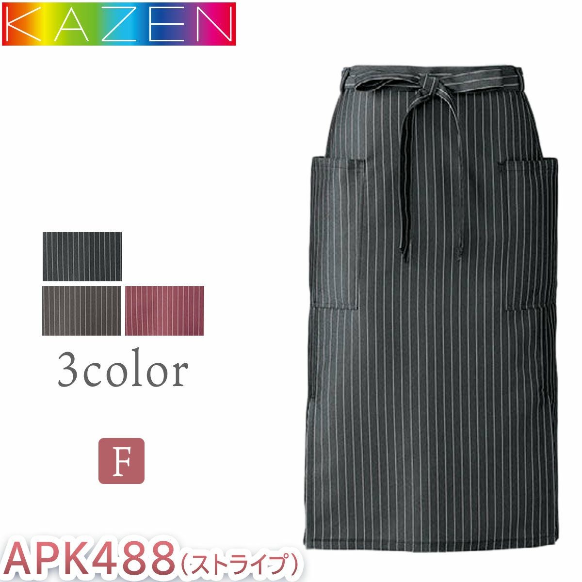 カゼン 腰下エプロン ミドル丈 ストライプ 退色防止加工 メンズ レディース ユニセックス 男女兼用 KAZEN サービス 飲食 カフェ 喫茶店 APK488-S5 APK488-S33 APK488-S81 接客 厨房 レストラン パティシエ シェフ ソムリエ 中華 バリスタ パン屋 ホールスタッフ