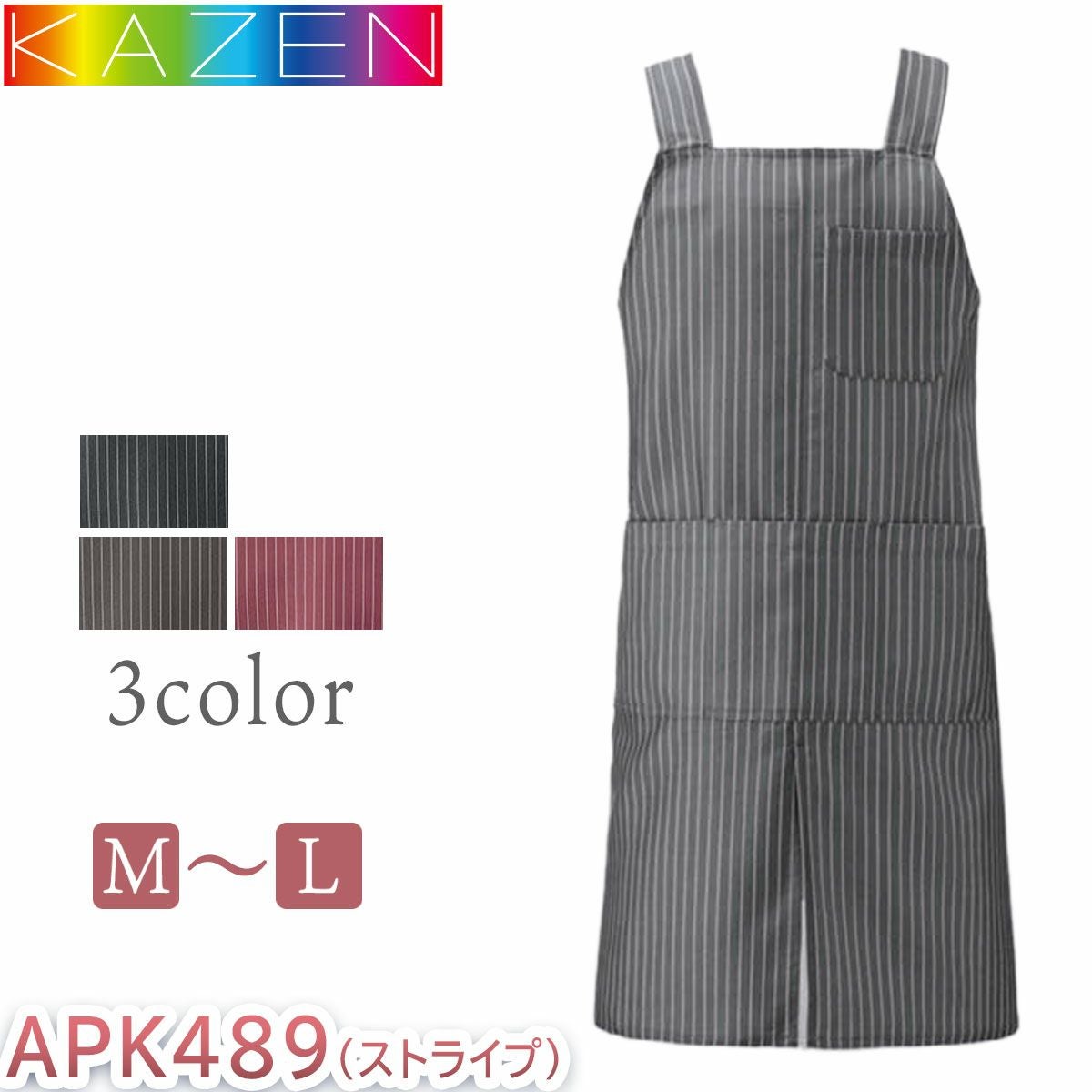 カゼン 胸当てエプロンH型 ストライプ 退色防止加工 メンズ レディース ユニセックス 男女兼用 KAZEN サービス 飲食 カフェ 喫茶店 APK489-S5 APK489-S33 APK489-S81 接客 厨房 レストラン パティシエ シェフ ソムリエ 中華 バリスタ パン屋 ホールスタッフ