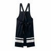 濃色のベースに太めの白ラインが目をひくエプロン。ハリのあるツイル素材で、耐久性もあり。