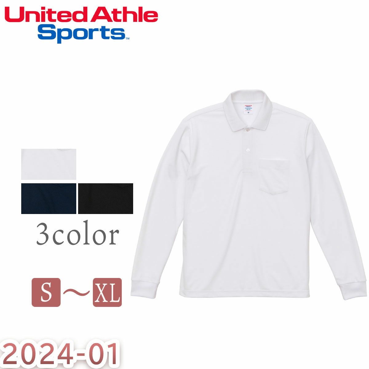 ユナイテッドアスレ ポロシャツ UnitedAthle メンズ レディース ユニセックス 男女兼用 2024-01 ポケット付 4.7オンス スペシャル ドライ カノコ ロングスリーブ ローブリード サービス S-XLサイズ